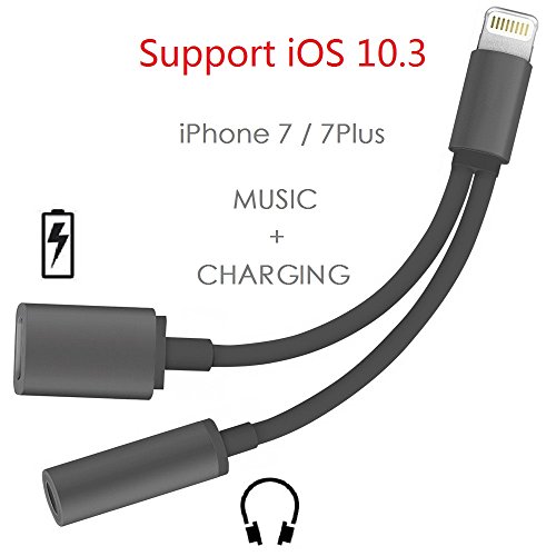 -. Feature : Updated Version of Lightning to 3.5mm Headphone Jack Audio Adapter Splitter and Lightning Charger Port, optimised to fully support the iOS 10.3 or later system update. Perfect for iPhone 7/ 7 Plus, 6/ 6s, 6/ 6s Plus, iPad, iPod and headphones with 3.5mm audio interface. / This 2 in 1 Lightning To 3.5mm Audio Charge Earphone Jack Adapter Cable is high-quality made of aluminum, TPE materials. / Listen to Music and Charge Your Phone at the Same Time- iPhone7/7Plus don't have 3.5mm jack port, listening and charging cannot be operated at the same time. This cable solves the problem. It supports simultaneous charging and audio output, so you enjoy the fun of listening to music while charging. ( NOTE: This 2 in 1 Adapter can NOT answer the phone calls but can Control Music via earphone button.) / No charge, no software required. Just plug your existing headphones / earphones into the jack. / What you get: 1 x Betteck Lightning to 3.5mm Audio Charge Earphone Jack Adapter Cable,12-Month warranty, easy-to-reach and friendly customer service. Please be aware of Counterfeit product from NON-Betteck sellers! Please make sure the item sold by Betteck to receive Genuine Product.