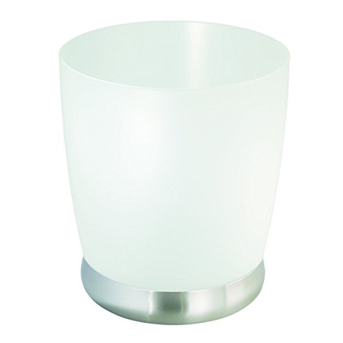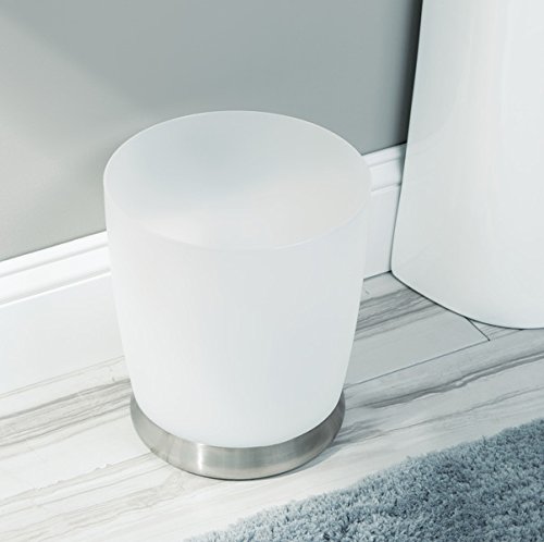 mDesign Round Translucent Clear Plastic Small Trash Can Wastebasket, Garbage Container Bin for Bathrooms, Powder Rooms, Kitchens, Home Offices - Translucent Plastic, Brushed Stainless Steel Base