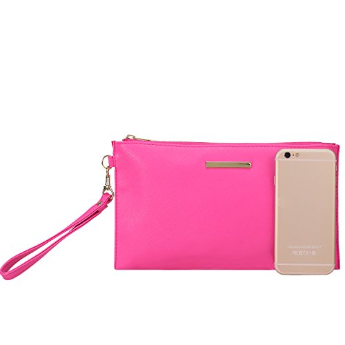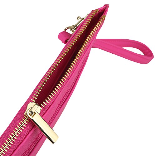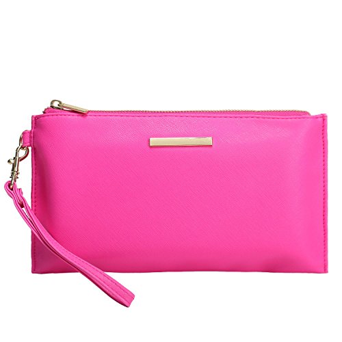 UU Family Plain Safianno Women Long Wristlet Clutch (Rose pink)