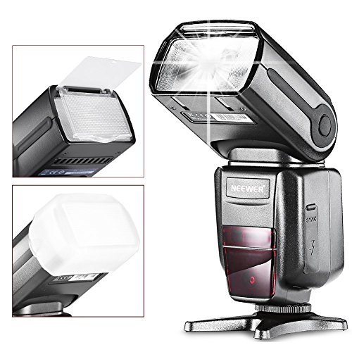 Additional Features: Rear-curtain sync, FEC, FEB, manual zoom, auto zoom, sound prompt, advanced setting, automatically saving setting, PC port, power saving mode and over heat protection