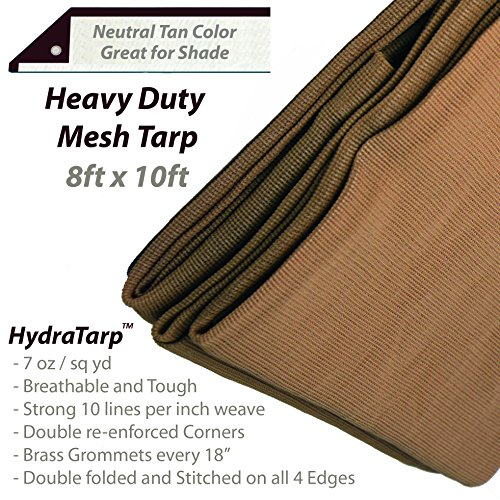 HydraTarp 8 Ft. X 10 Ft. Heavy Duty 7oz Breathable Mesh Tarp - 7 oz per/sq yd weight - Neutral Tan Color