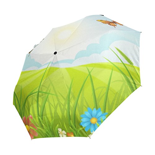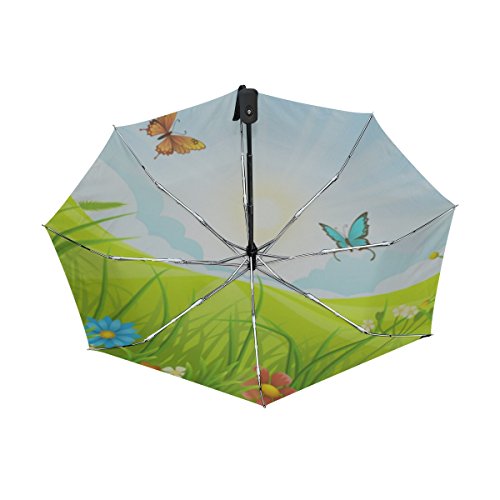 (ALAZA)/Accessories/Umbrellas/DIRECT FROM USA/Cooper girl Butterflies In Grass Auto Open Close Rain Umbrella Anti-UV Waterproof for Business ...