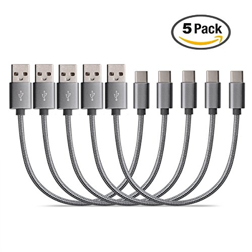 Short USB C Cables [5 Pack 8 inches] Aroek Nylon Braided USB Type C Charging Cable for Nintendo Switch, Macbook 12 Inch, Galaxy S8/ S8 Plus/ LG G5/G6, Google Pixel and More, Grey