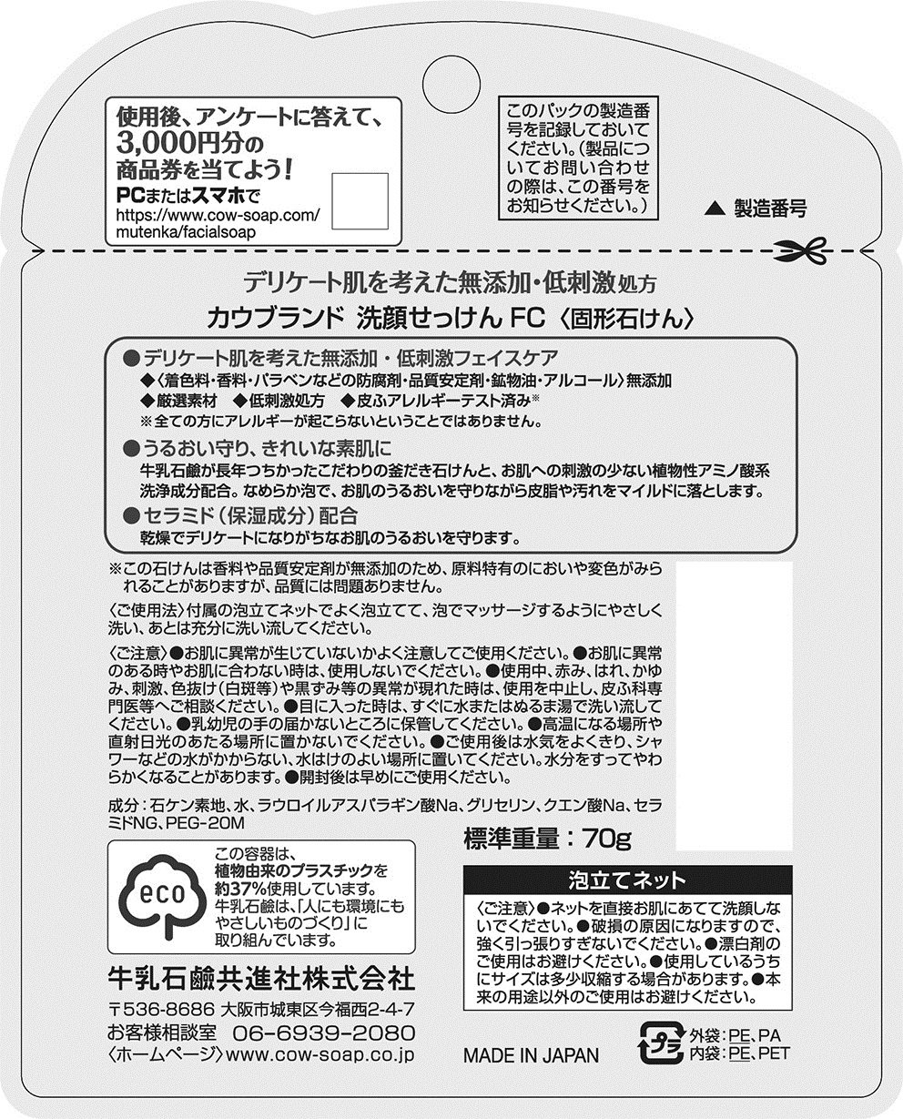 Washing face soap with no additives / low irritation prescription considering delicate skin.