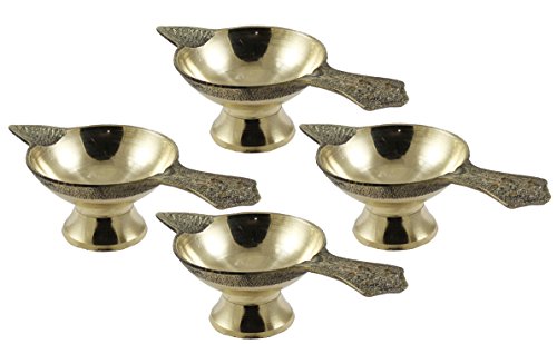 Set of 4 - Indian Brass Oil Puja Lamp - Diya Wick Lamp Liquid Candle Vintage Style