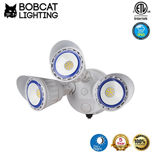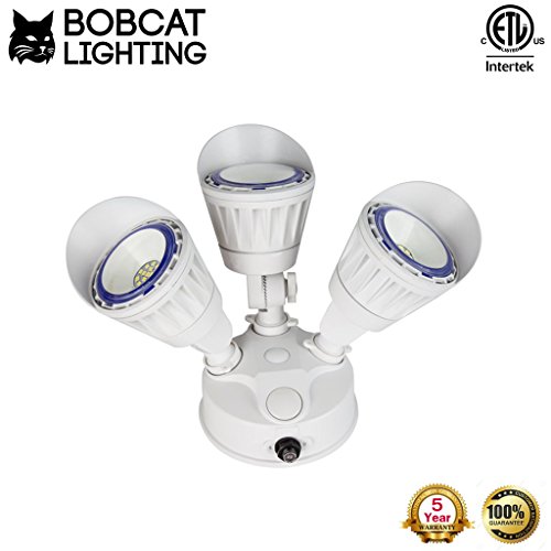 - ☄ HIGH QUALITY - Die-cast aluminum pure metal body has an impact-resistant, polycarbonate lens, which protects the LEDs from water, dust, and debris. Bobcat brings LED outdoor lighting excellence to your home and/or business with our three head outdoor LED security light (LED job site lighting). ETL Listed, our product is made to the highest standards and rated for wet locations.