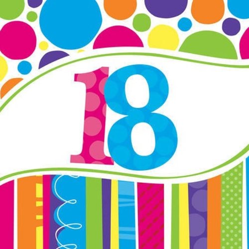 Creative Converting 18 Count Bright and Bold 18th Birthday Lunch Napkins,