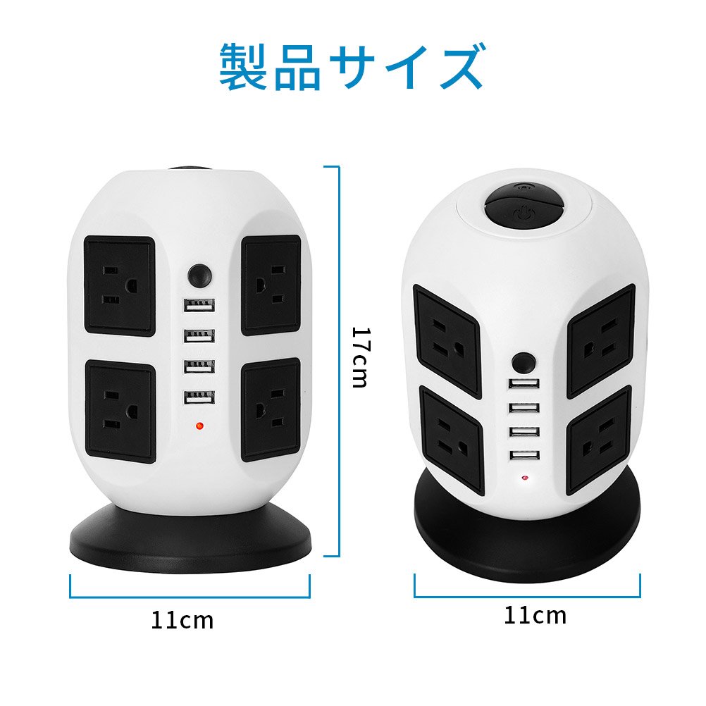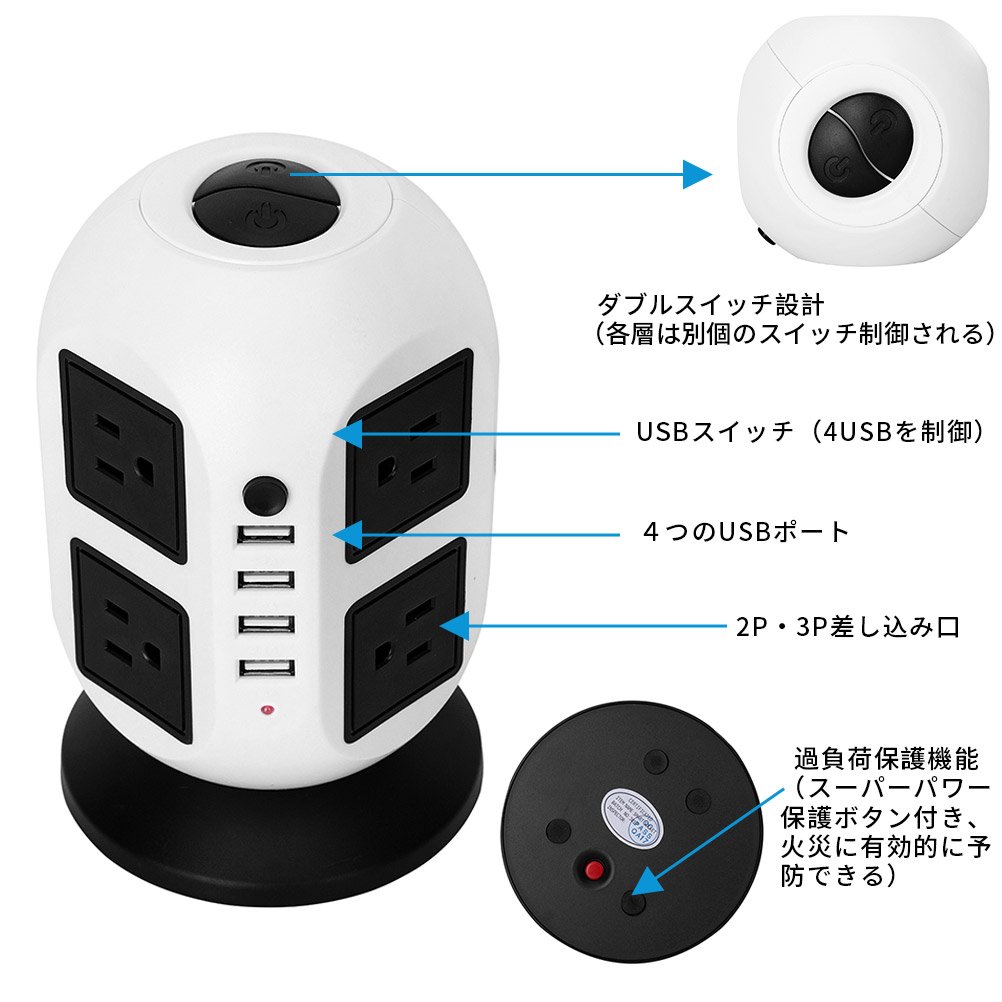 1 * 8 output 4 USB ports 2 layers surge rotary type power tap