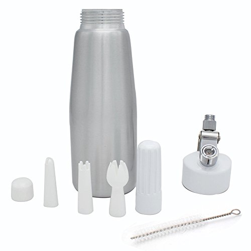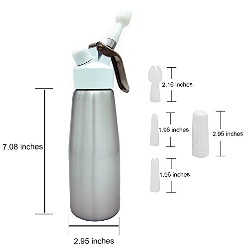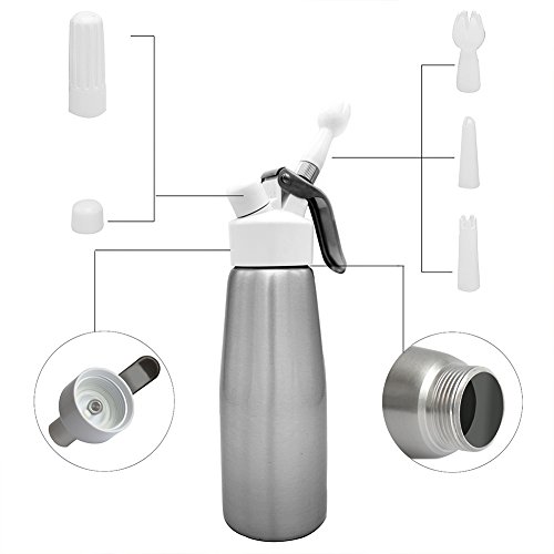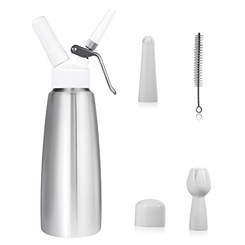 CoZroom Professional Whipped Cream Dispenser (1 Pint) - Brushed Aluminum Body with 3 Decorating Tips – Compatible with all 8 gram N20 Cartridges (Not Included)