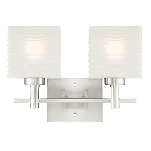 6303900 Alexander Two-Light Indoor Wall Fixture, Brushed Nickel Finish with Rippled White Glazed Glass