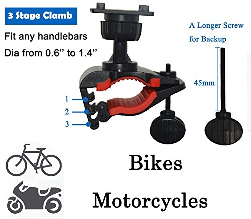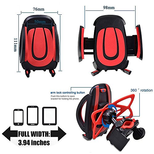 Adjustable support,fit for different sizes( Diameter15mm-35mm )motorcycly and bicycle handle bars; Adjustable Mount, Compatible with 1.78-4" wide devices, as MP3 Players, GPS Devices, smartphone( iPhone/ Samsung/HTC/Huawei/Sony etc.)