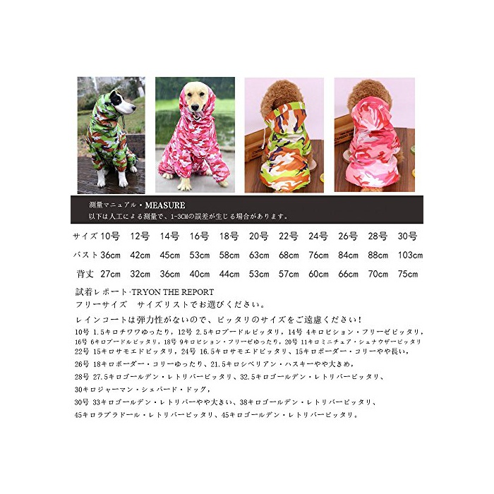 원본상품명:Pangu ワンちゃんレインコ?ト 中大小型犬 ペットレインコ?ト 大型犬レインコ?ト 迷彩四脚レインコ?ト