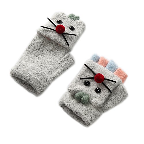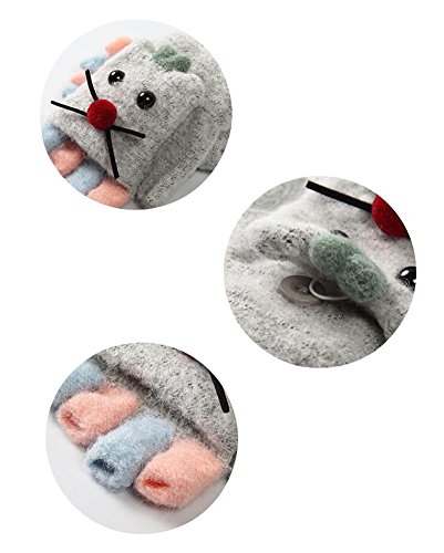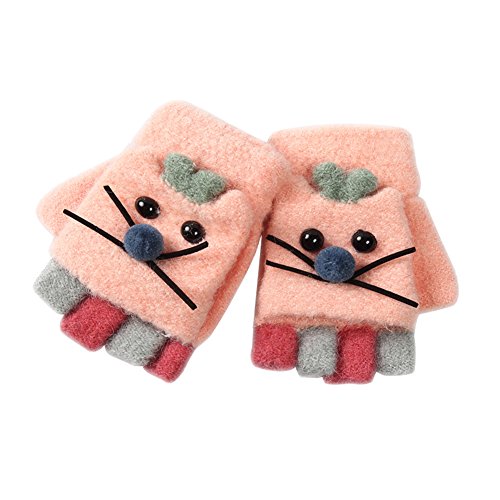 Selected cotton fabric,warm and soft. Wrist elastic design,warm baby wrist. 3D cartoon mouse image is very cute.Baby love it. Flip top and button design:When pupils write,the kids can open the glove cap,fixed with buttons,to prevent falling back,exposing half of fingers. Open-palm semi-finger warm design:In the cold season,whether you write, take things or do other things,it won't hinder your hands to keep warm and flexible operation After you have written,you can release your gloves cap and put your fingers back in the glove cap,which is used as mittens to keep warm.Isn't it great that a glove can be used for both? It's not only a hand warmer,but also as a clothes decoration for your baby or send to your friends' baby as a nice gift!