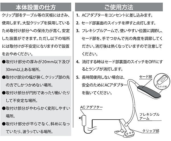 360度曲がるフレキシブルアームで、照射角度が自在に調節できます。ON/OFFスイッチによる簡単操作。寝室や机用の照明におすすめです。