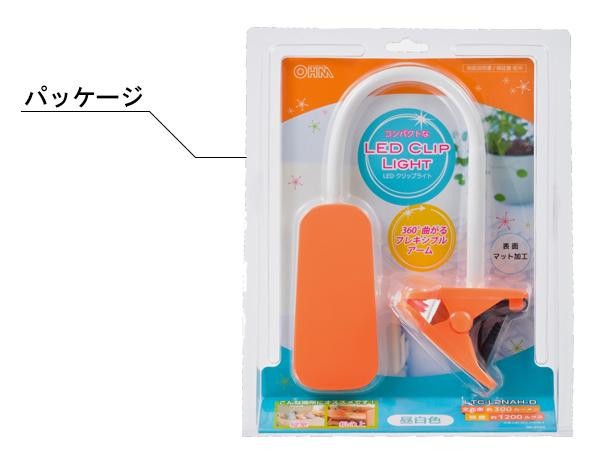 360度曲がるフレキシブルアームで、照射角度が自在に調節できます。ON/OFFスイッチによる簡単操作。寝室や机用の照明におすすめです。 製造国:中国 素材・材質:ABS 商品サイズ:クリップ部幅:約70mm、アーム長:約280mm、ヘッド部幅:約60mm ※サプライヤー直送品【商品名】オーム電機 OHM LEDクリップライト オレンジ LTC-L2NAH-D
