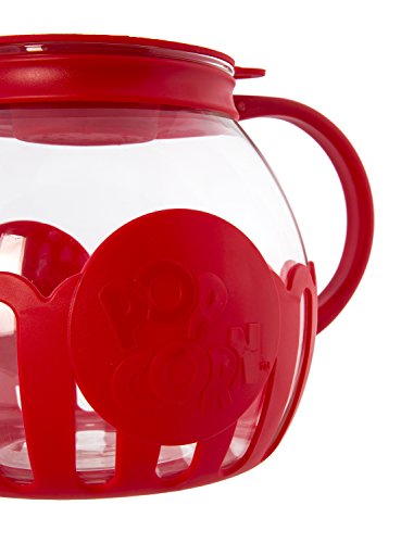 Ecolution Micro-Pop Microwave Popcorn Popper 1.5QT - Temperature Safe Glass w/Multi Purpose Lid, Snack Size, Red