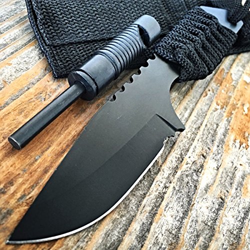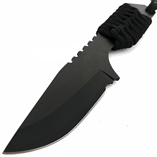 -. Feature : The tactical knife is a great knife for any hunter, camper, survivalist, outdoor or knife enthusiast. / Knife's blade material is 440 high quality stainless steel and the body color of outdoor knife is black. / This knife come with a black nylon sheath with belt loop, it makes the knife more easy safe to carry. / The camping knife has metal handle wrapped with thick nylon rope for a secure hold. / Suitable for use: outdoor travel, picnic, camping, hunting, hiking and other welcome!