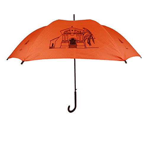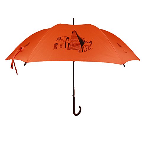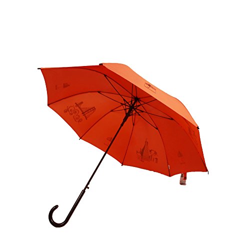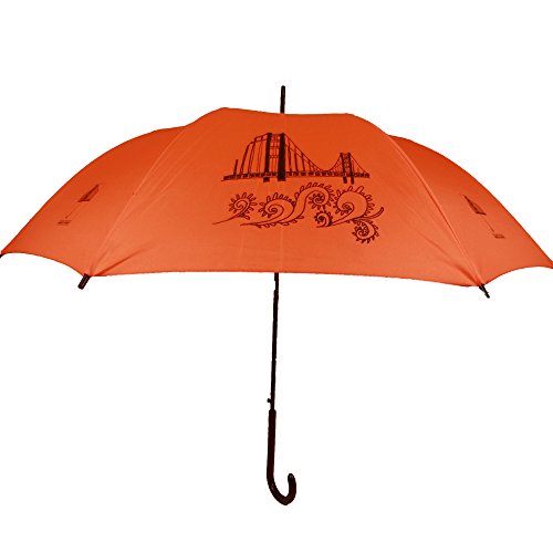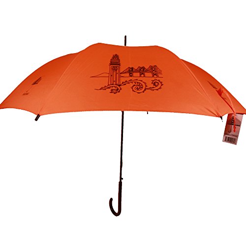 Studio : The San Francisco Umbrella Company Publisher : The San Francisco Umbrella Company Binding : Apparel Product Description The San Francisco Landmarks Umbrella is a classic English stick style umbrella that features four silkscreened scenes from the city by the bay-the Golden Gate Bridge, Mission Delores, the Ferry Building and Bay Bridge, and the Transamerica Building and downtown silkscreened across every alternating panels on beautiful lush orange fabric. It is a very fine quality umbrella for which we offer guaranteed free replacement in case of defect or damage for 3 years. Since 2012 The San Francisco Umbrella Company has made very high quality rain umbrellas. Most feature stunning silhouettes of dogs, cats, and other animals on gorgeous colorful canopies as well as San Francisco themes. We also make Sun and Rain Personal Umbrellas featuring Sunbrella fabric. Our umbrellas are made to old-world standards with fiberglass ribs for great strength and flexibility, steel shafts for durability, and auto-open and easy close for simple operation. These are some of the finest umbrellas in the world. Manufactured in Xiamen, China at one of the world's leading umbrella factories. 34.5 inch long, 40 inch wide canopy when open. 190T Pongee Polyester Canopy. Fiberglass ribs and arms. Plastic handle. Please note: we offer guaranteed free replacement in case of defect or damage for 3 years. 0