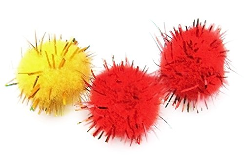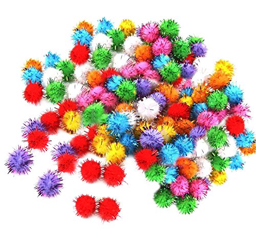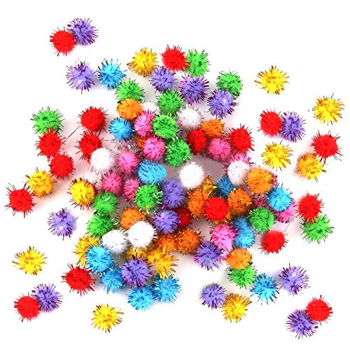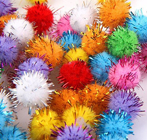 -. Feature : Colorful Pompoms Balls with Sprayed Glitzy Tinsel / The colorful toy poms are play and exercise for your Furry Friend / Color:ramdon / Size: Approx. 1.5cm / 0.59 inch / Quantity:100pcs