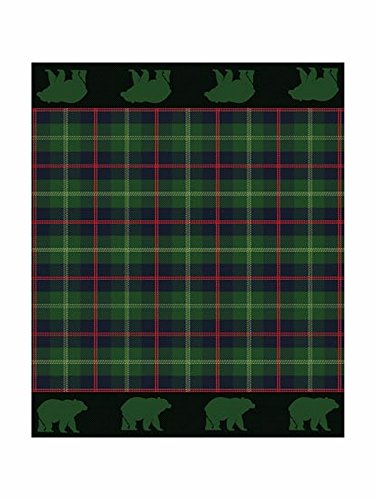 Adirondack Lodge Green Plaid with Bears Soft Coral Fleece Throw Blanket 70 x 90