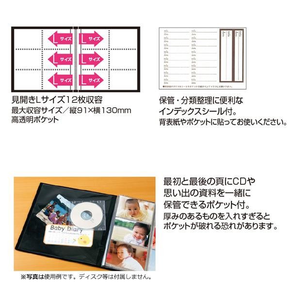 | 仕様 | 溶着式ポケット 対応写真サイズ:Lサイズ 最大収納サイズ:縦91×横130mm 収納枚数:240枚 フリーポケット×2 冊ケース付 インデックスシール付 |