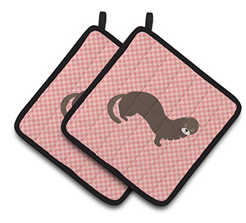 Caroline's Treasures BB7868PTHD Russian Or European Mink Pink Check Decorated Pot Holder, 7.5" x 7.5", Multicolor