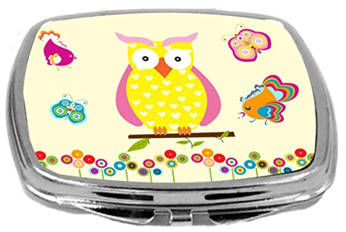 Rikki Knight Compact Mirror, Yellow Owl Hearts On Deco