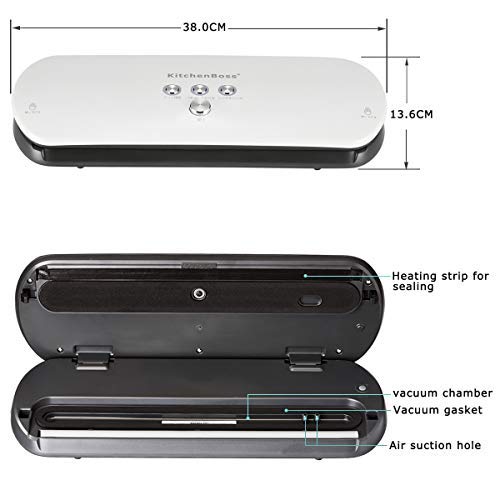 超高真空機能を備えたKitchenboss真空パック機、商用真空ポンプと高効率モーターを使用して強力な吸引能力を備えています。