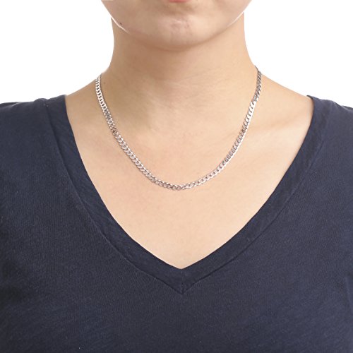 Made out of solid .925 sterling silver, our fancy Curb necklace is a fine choice for those who enjoy collecting accessories which can be worn with everything from casual wear or resort wear to more formal attire. Keep in mind that this particular chain style looks stunning when worn alone, but you can always add your favorite pendant to the necklace when desired. The width of the chain is 4.8mm, so make sure your pendant can slip over the chain with ease.Turn to our Curb chains when you are looking for a stylish gift idea! Give it as a birthday gift, congratulations gift, graduation gift, Valentine's Day gift or anniversary gift. Dads, moms, husbands, wives, sisters, brothers, friends, coworkers, sons and daughters can all incorporate our .925 silver chains into their collection of everyday accessories.