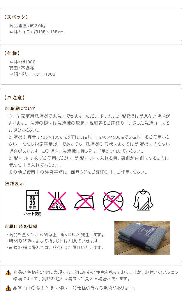 ●中綿:ポリエステル100%