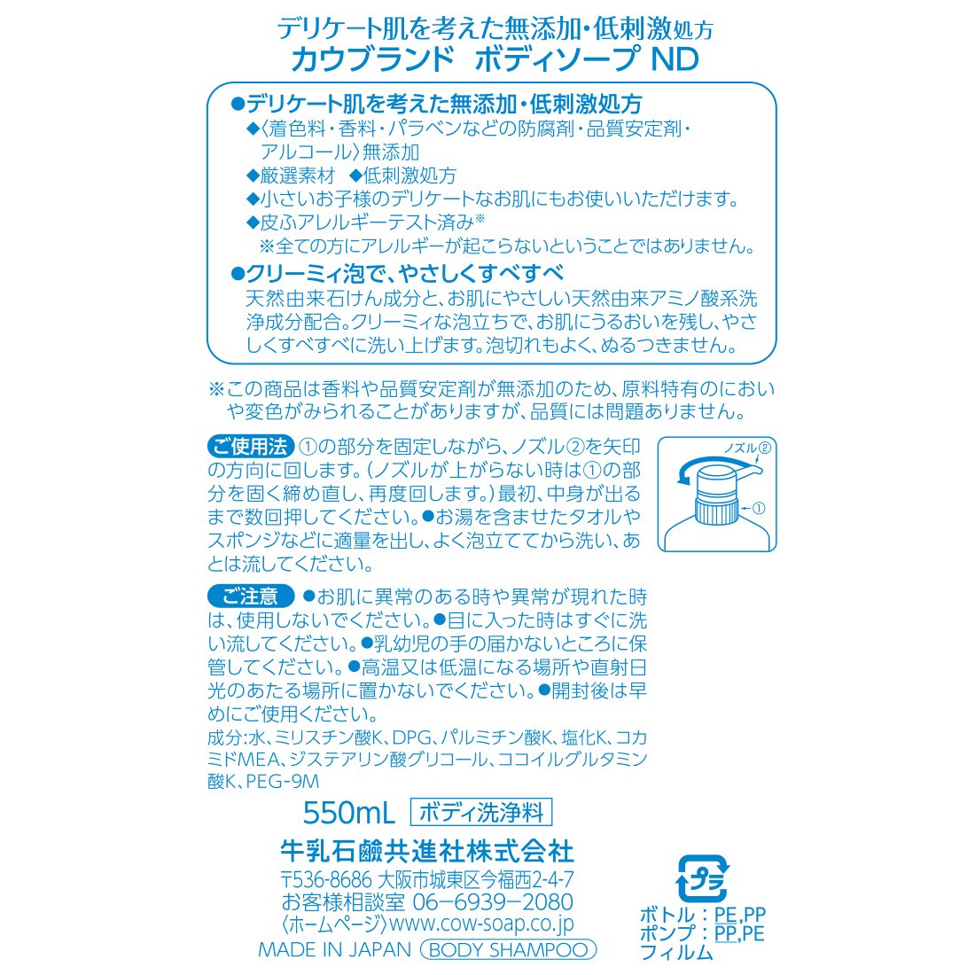 It reduces the number of pushing by adopting "plentiful foam pump" which is three times as much foam (as compared to our company) at 1 push.