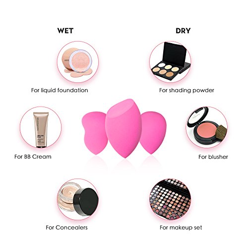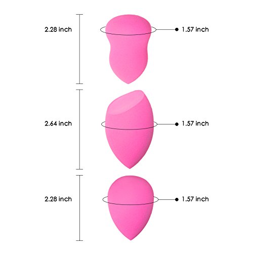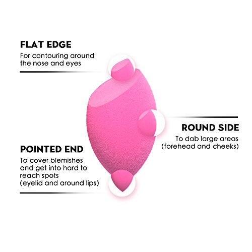 Different Shape Design- Three pieces makeup puffs comes to different shapes for different areas use on the face. Use round sides to dab larger areas of the face such as forehead and cheeks. Flat edge is for contouring around the nose and eyes. And use the pointed tip to cover blemishes and get into the most hard-to-reach areas such as eyelid.