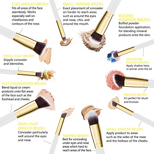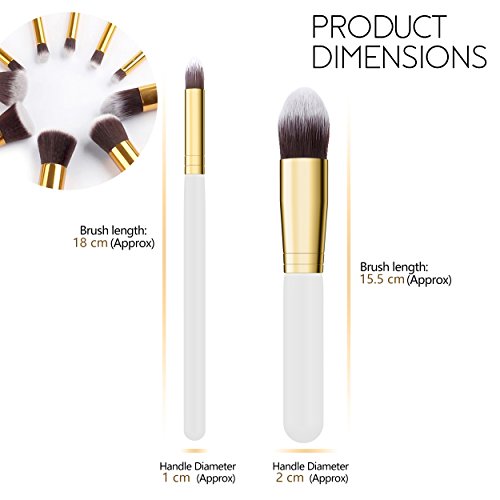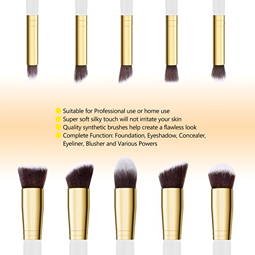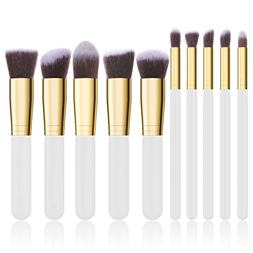 Makeup Brushes, Kabuki Makeup Brush Set Powder Concealer Eye Blending Cosmetics Brushes 10pcs, White with Gold