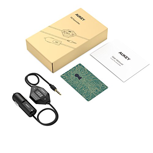 Package Contents: AUKEY BT-C4 FM Transmitter Car Kit, User Manual, 45-Day Money Back Guarantee and 24-Month Warranty Card