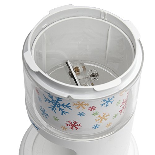 -. Feature : FAST TREATS: Quickly shaves snow quality ice for snow cones, fruit slushies and other chipped or crushed ice treats / SAFE TO USE: Safety blade system protects blade from exposure when lid is removed / ACCESSORIES: Includes 2 handy Ice Molds / NO FUSS: Components separate for quick and easy clean up / NO MESS: Convenient Drip Tray prevents spillover