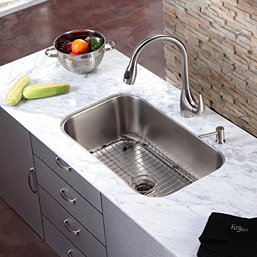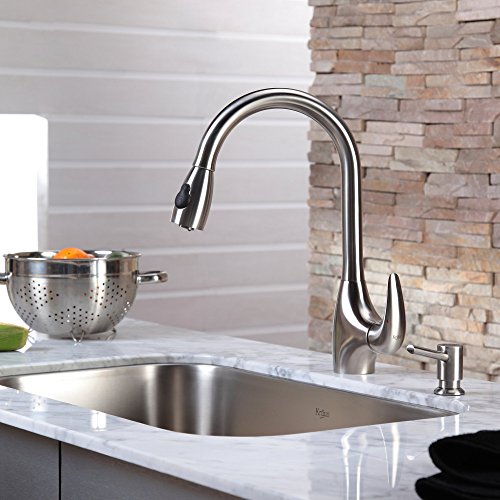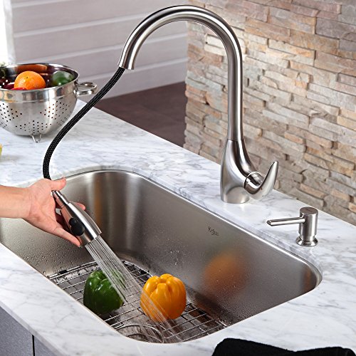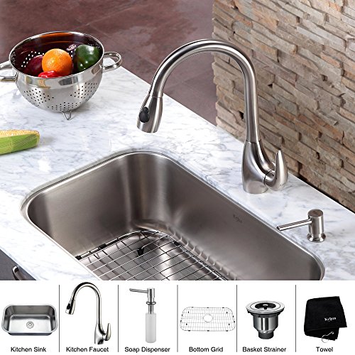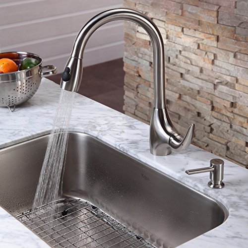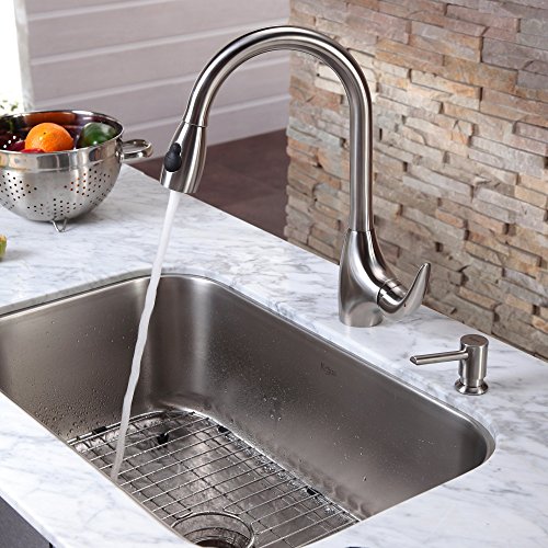 Kraus KBU14-KPF2170-SD20 31 1/2" Undermount Single Bowl Stainless Steel Kitchen Sink with Kitchen Faucet and Soap Dispenser