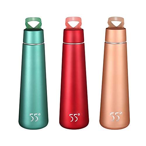 UNIQUE DESIGN- All vacuum sealed water bottles under our brand 55° are designed by our own designer, all design are original and unique. There is rubber finger grip on the top, easy to carry with