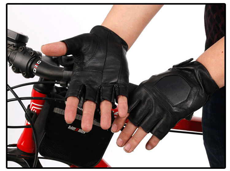 Leather Sport Motor Cycle Bicycle Fingerless Half Finger Gloves Bike For Men Gym