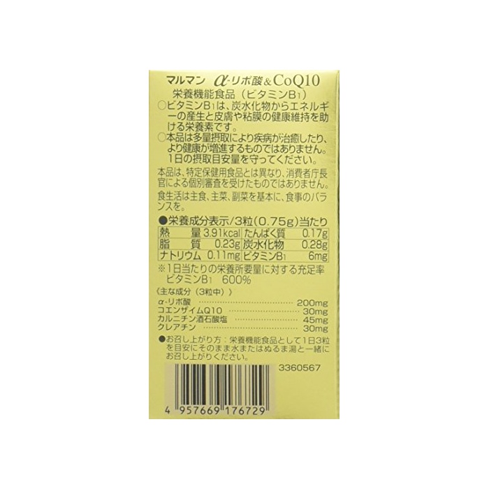 알파 리포산을 3 입중으로 200mg배합.게다가코엔자임Q10,L-카르니틴,클레어 친,비타민B1을 플러스.