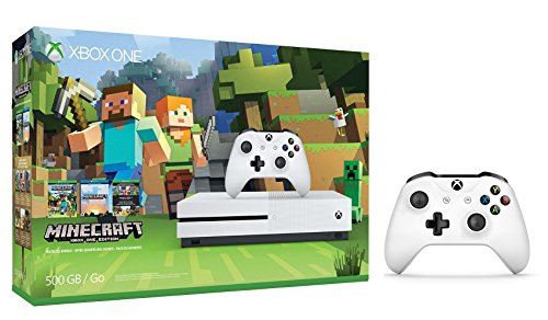 -. Feature : Includes: Xbox One S 500GB Console, full game downloads of Minecraft for Xbox One and Windows 10, 2 Xbox Wireless Controller, HDMI cable (4K Capable), Power cable and 14-day Xbox Live Gold Trial. / Comes with the Favorites Pack, featuring seven fabulous, community-favorite content Packs such as Halo Mash-up and Festive Mash-up. / Also includes the Builder's Pack, featuring six additional content Packs like the Biome Settlers Pack 1 and Greek Mythology Mash-up. / Watch 4K Blu-ray movies or stream Netflix and Amazon P.R.Ime in 4K Ultra HD. / Play over 100 console exclusives and a growing library of Xbox 360 games on Xbox One.