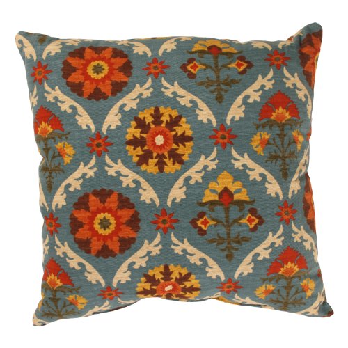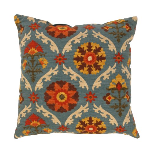 Pillow Perfect Mayan Medallion 24.5 x 24.5-inch Floor Pillow in Adobe. 100-Percent cotton shell with 100-percent polyester fill. Sewn seam closure. Spot Clean. Made in USA.
