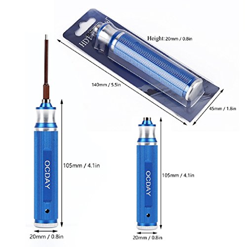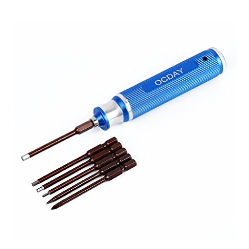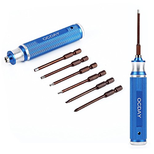 Studio : Kocome Publisher : Kocome Binding : Misc. Product Description 100% brand new and high quality Features: RC Tool 6-in-1 Multi-function Tool Kits Hex Flat Screwdriver Suitable FOR OCDAY Ole design in the handle bar ,blade storage, handle bar groove track design,easy to slide the tool with a magnetic , can keep tight with screws, work more convenient Exquisite workmanship,with H1.5mm-H3.0mm Tip choice,easy to install and remove The hex tips are stored inside the handle cap. Specifications: Handle Size: 105 x 20mm/4.1 x 0.8 inch(height x diameter) Package size: 140 x 45 x 20mm/5.5 x 1.8 x 0.8 inch Quantity:1Set(7Pcs) Note: Due to the difference between different monitors, the picture may not reflect the actual color of the item. Thank you! Package includes: 1 x Hex Screwdriver Handle 1 x H1.5mm Tip 1 x H2.0mm Tip 1 x H2.5mm Tip 1 x H3.0mm Tip 1 x 1# Size Flat Head Tip 1 x 0# Sized Phillip Head Tip(no retail package) 0