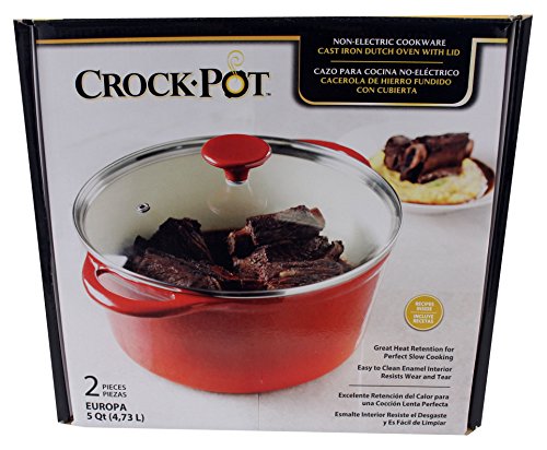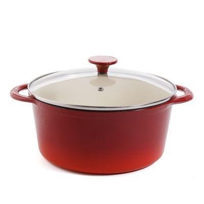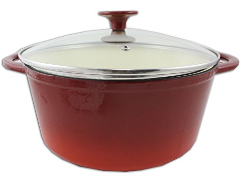 CrockPot Europa 5 Qt. cast Iron Dutch Oven & Lid Gradient Red; Glass Lid