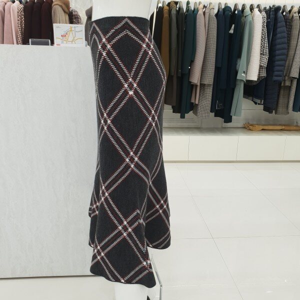 여성스러움을 강조하는 니트플레어체크스커트입?다