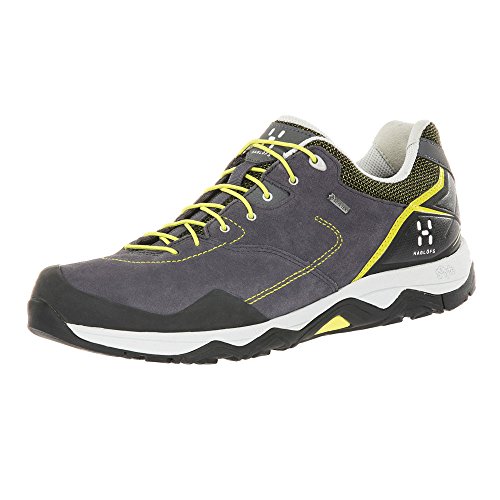Binding : Apparel Product Description Haglofs Roc Claw GT Walking Shoes This Haglofs Roc Claw GT Walking Shoe is the perfect lightweight comfort approach footwear for technical approaches and mountain trekking. The outsole provides extraordinary traction in all conditions. Meanwhile, the supportive upper and midsole deliver outstanding comfort. Exceptional grip and premium protection meet wearability. Gore-Tex Upper Gore-Tex technology is extremely prominent in the upper of the Haglofs Roc Claw GT Walking Shoe as it works to actively keep you warm and dry even in the most difficult conditions and on the arduous terrain. Having the waterproof protection will enable you to walk with confidence as you strive for the best results and performance. As well as keeping your feet protected from the elements, the upper also promotes effective moisture management by wicking away the excess sweat and moisture to leave you feeling cool, dry and comfortable. A rubber-reinforced toe adds increased protection from debris while a tongue gusset prevents water and sand from entering the shoe and causing unwanted distraction or discomfort. Rounding off the upper is the Ecsaine heel collar which adds comfort and durability to help you maximise your performance. Solyte Midsole A combination of both Solyte and Gel cushioning technologies, the midsole is lightweight and offers excellent energy return. Solyte is highly lightweight, allowing you to hike faster and for longer, while also being incredibly responsive for a smooth ride over uneven ground. The Gel cushioning has been strategically placed in the rear foot to offer shock absorption upon impact to reduce the chance of injuries such as bruising occurring on the trails. AHAR Rubber Outsole Using a combination of Wet Grip Rubber and High Abrasion Resistant Rubber for the outsole, these shoes offer optimum grip in all weather conditions while also being incredibly durable. Wet Grip Rubber blends raw rubber, often used for studless snow tyres as the main materi 0