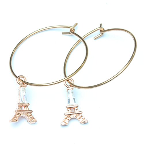 ストーンの種類:フープ ピアス:ピンクゴールド:ミニミニエッフェル塔