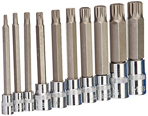 J&R Quality Tools 4-Inch Extra Long XZN Triple Square Spline Bit Socket Set, S2 Steel | 10-Piece Set