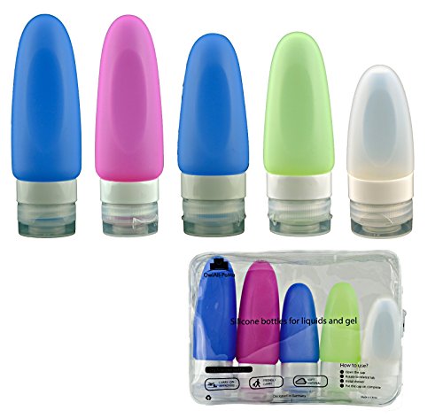 Travel Shampoo Bottles Set by OwiAll-PaMa- TSA Approved Refillable Travel Bottles - Set of 5 Leakproof Silicone Travel Bottles for Shampoo, Shower Gel,...