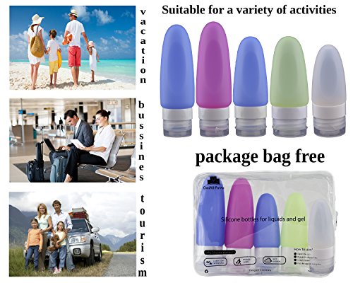 - •SUITABLE FOR ALL MODES OF TRANSPORTATION: The silicone bottles have the ideal quantity for travel, they can be taken everywhere, even if you choose the train, bus, car or airplane. The travel bottle set includes 5 silicone containers, perfect for a family of four, 2 for the parents and 2 for the kids. This is a great thing because every member of the family can carry his own toiletries.