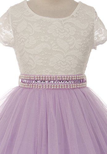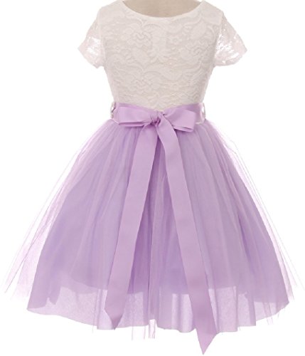 Gorgeous dress that complements the features of your special little girl! Cap Sleeve Lace Top Tulle Bottom Flower girls Dresses. Stone Rhinestone Belt on the waist. Zip up back and tie-back sash. Dress is tea length and fabulous! Perfect for flower girl, Junior Bridesmaid, Easter, Pageant, Graduation and other special occasions.Feature